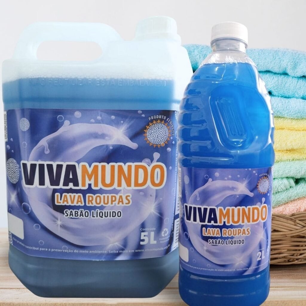 O lava roupas VivaMundo é concentrado, com fórmula vegetal, biodegradável e eficaz na remoção de manchas. Não deixa resíduos nos tecidos e tem aroma agradável. Ideal para quem quer roupas limpas e um planeta mais limpo.