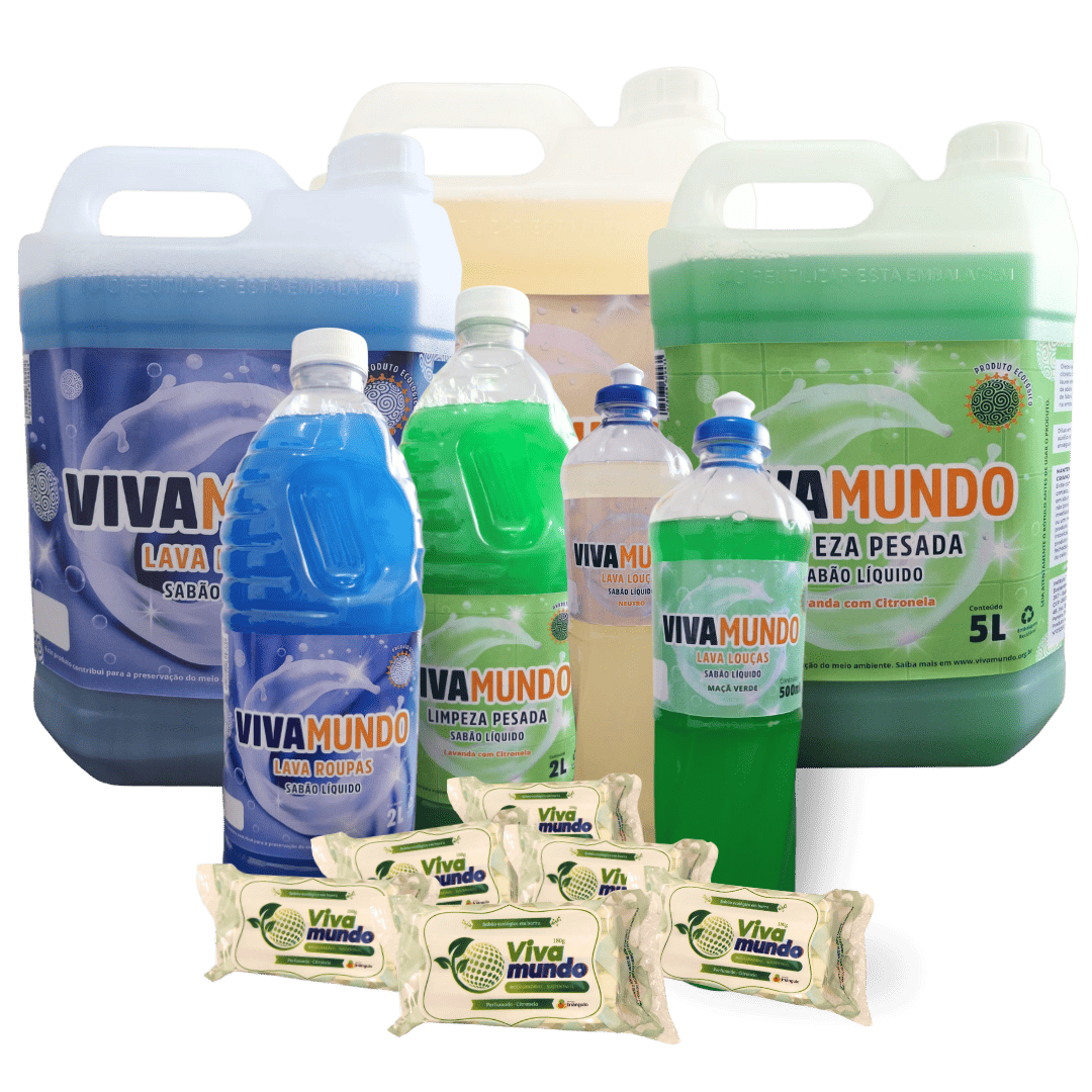 A linha de produtos VivaMundo nasceu com um propósito: transformar o óleo de cozinha usado em soluções de limpeza eficientes, acessíveis e sustentáveis.